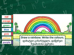 დახატეთ ცისარტყელა. დაწერეთ შესაბამისი ფერები.